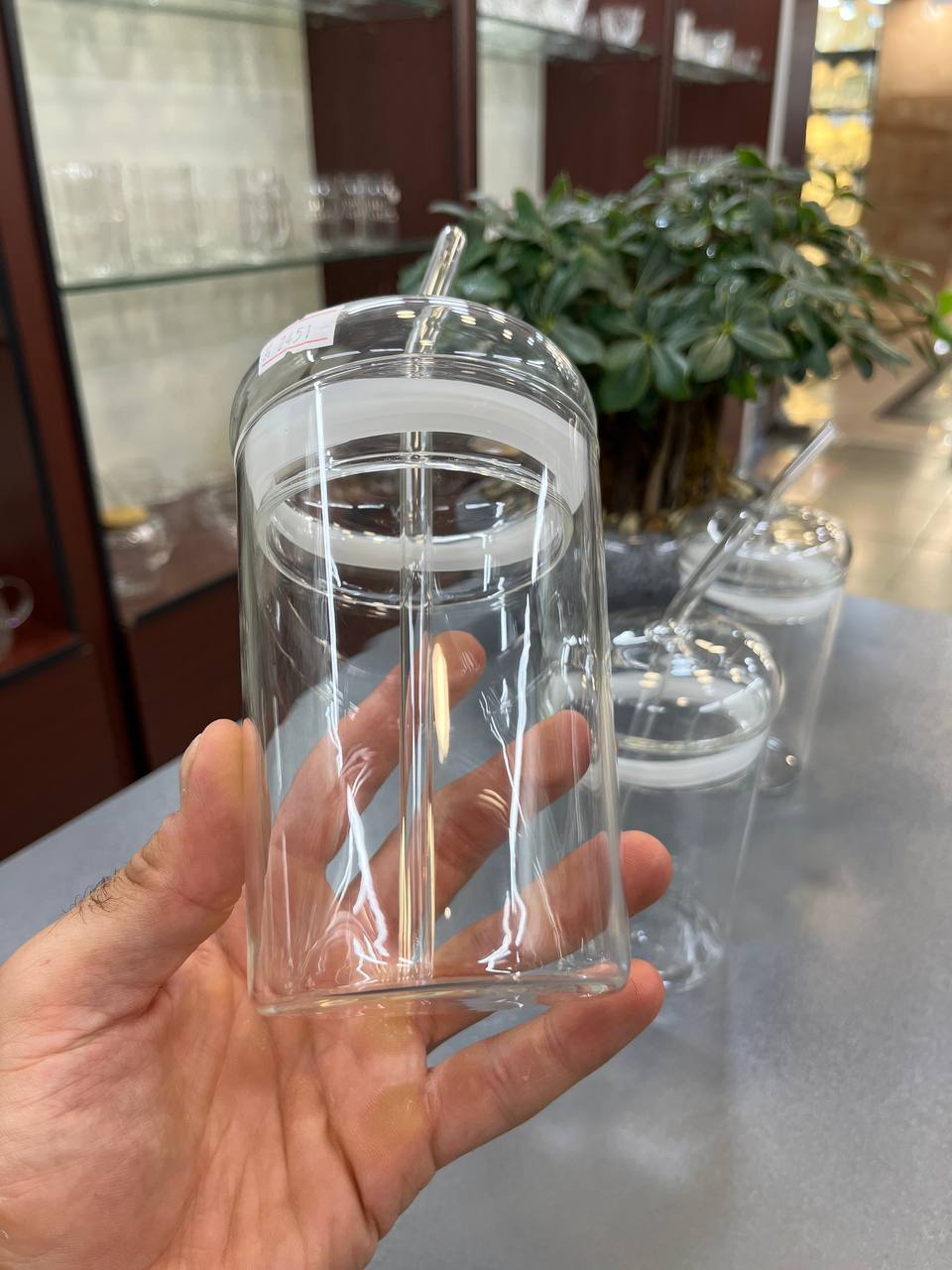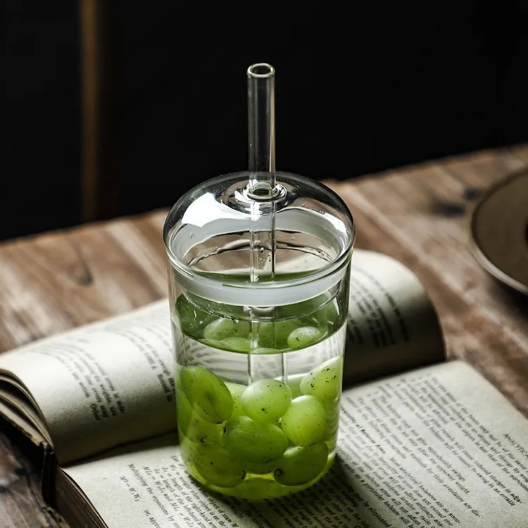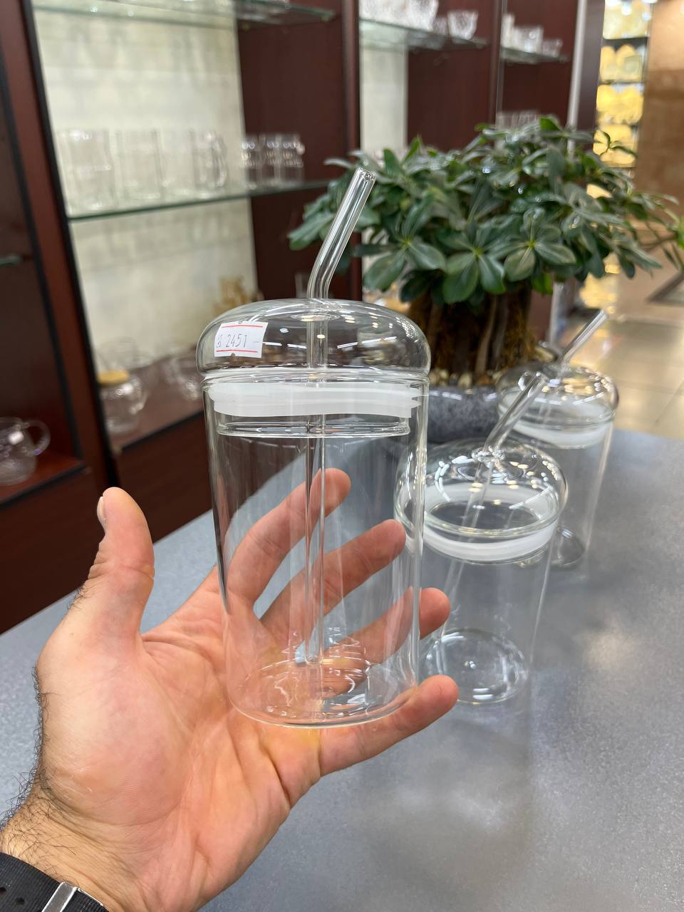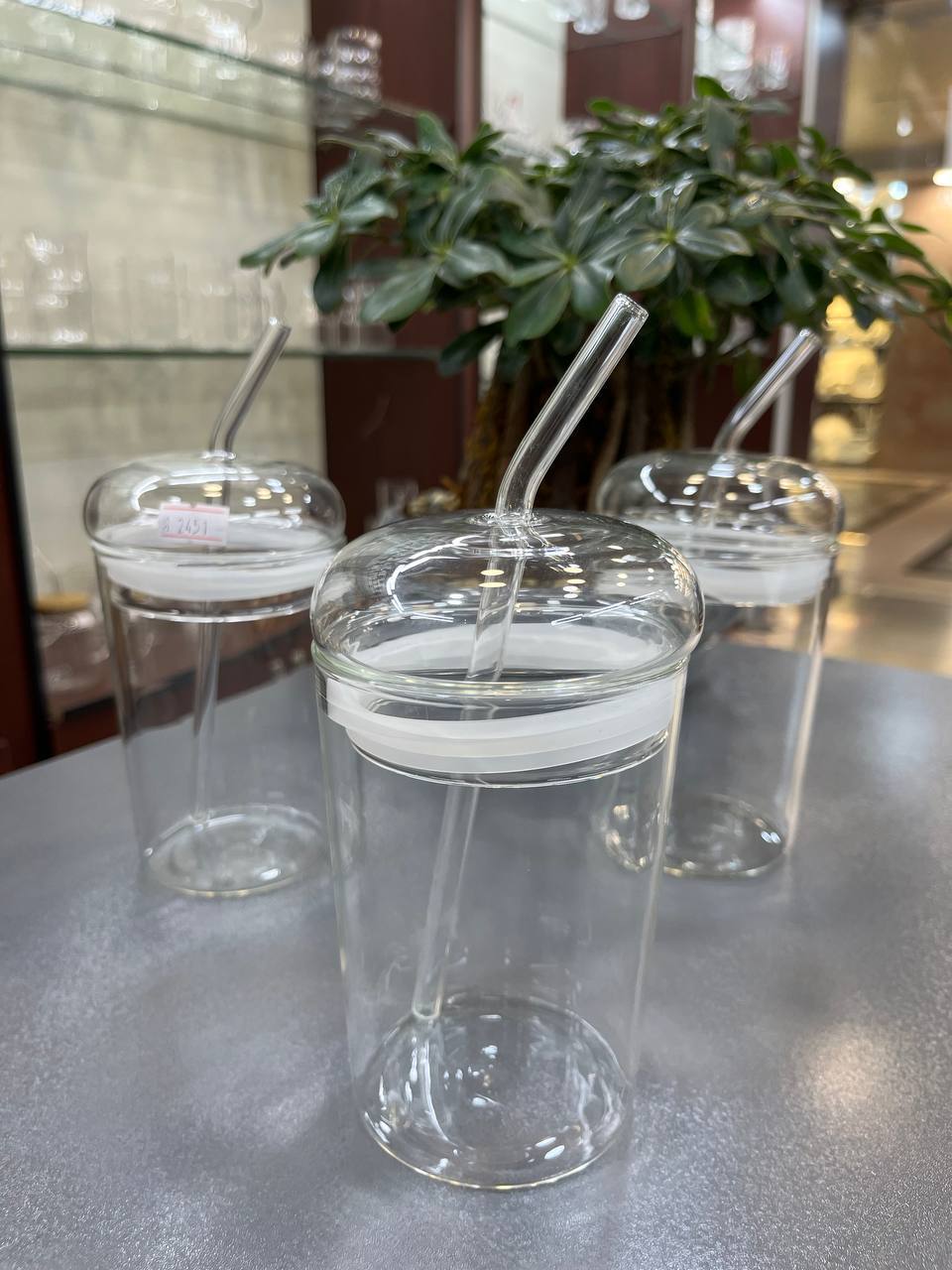 لیوان اسموتی درب و نی پیرکس(تک جعبه)